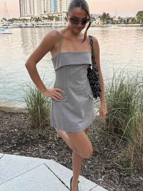 Grey Pinstripe Erin Mini Dress, $188.00
