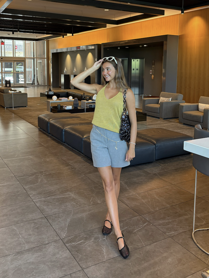 Yellow The Label Juni Ribbed Tank & Short, $98.00