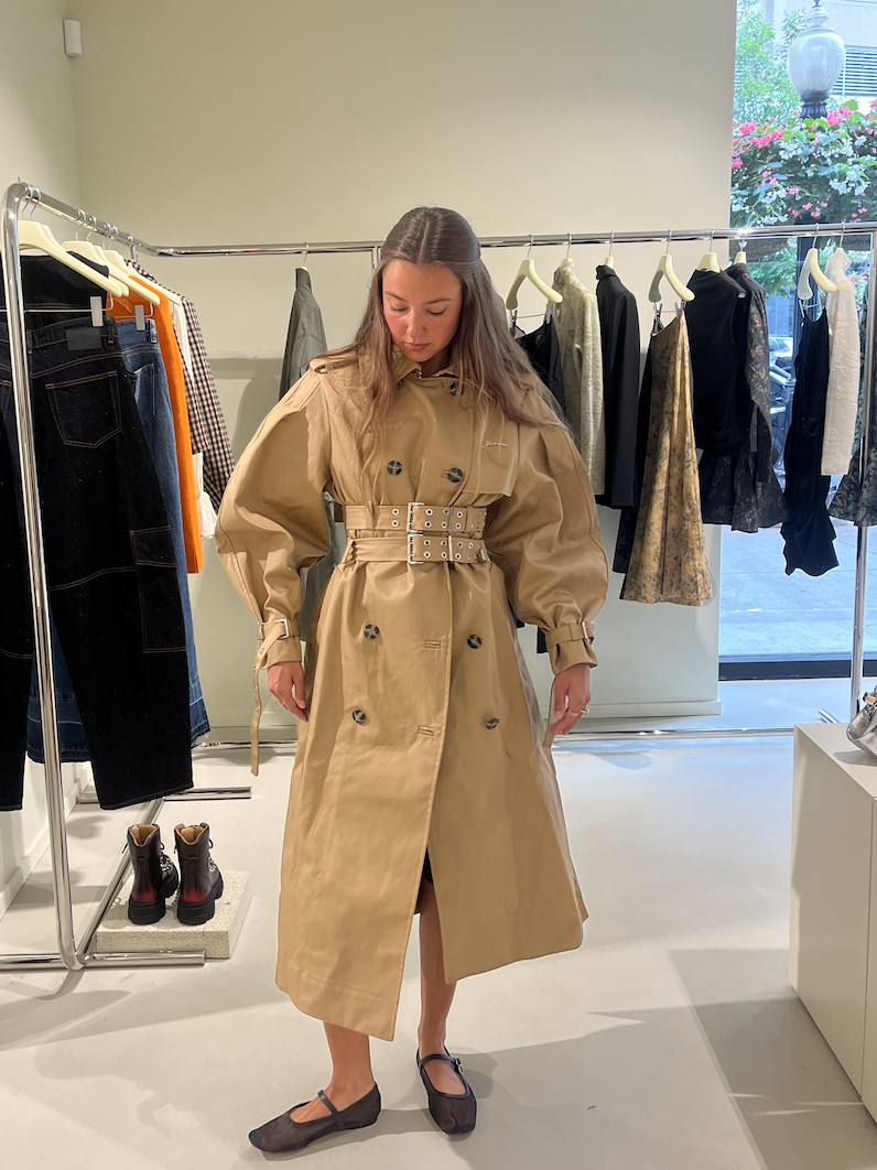 Ganni Camel Bonded Cotton Trench Coat, $875